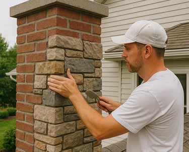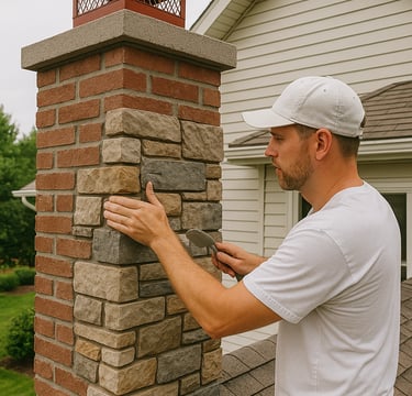 Installation of natural stone or brick veneer around exterior chimneys for increased durability, insulation, and architectural character.