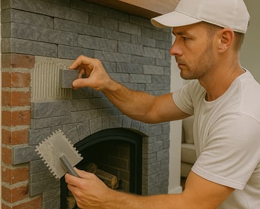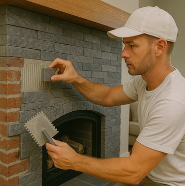 Tiling or stone cladding of fireplace surrounds, refreshing outdated brick or drywall builds, and creating custom mantels for a warm, elegant centerpiece.